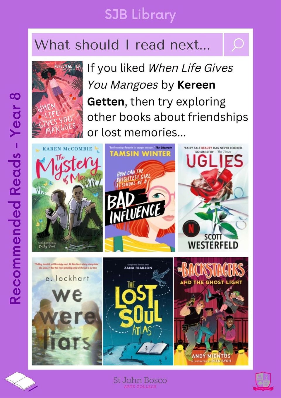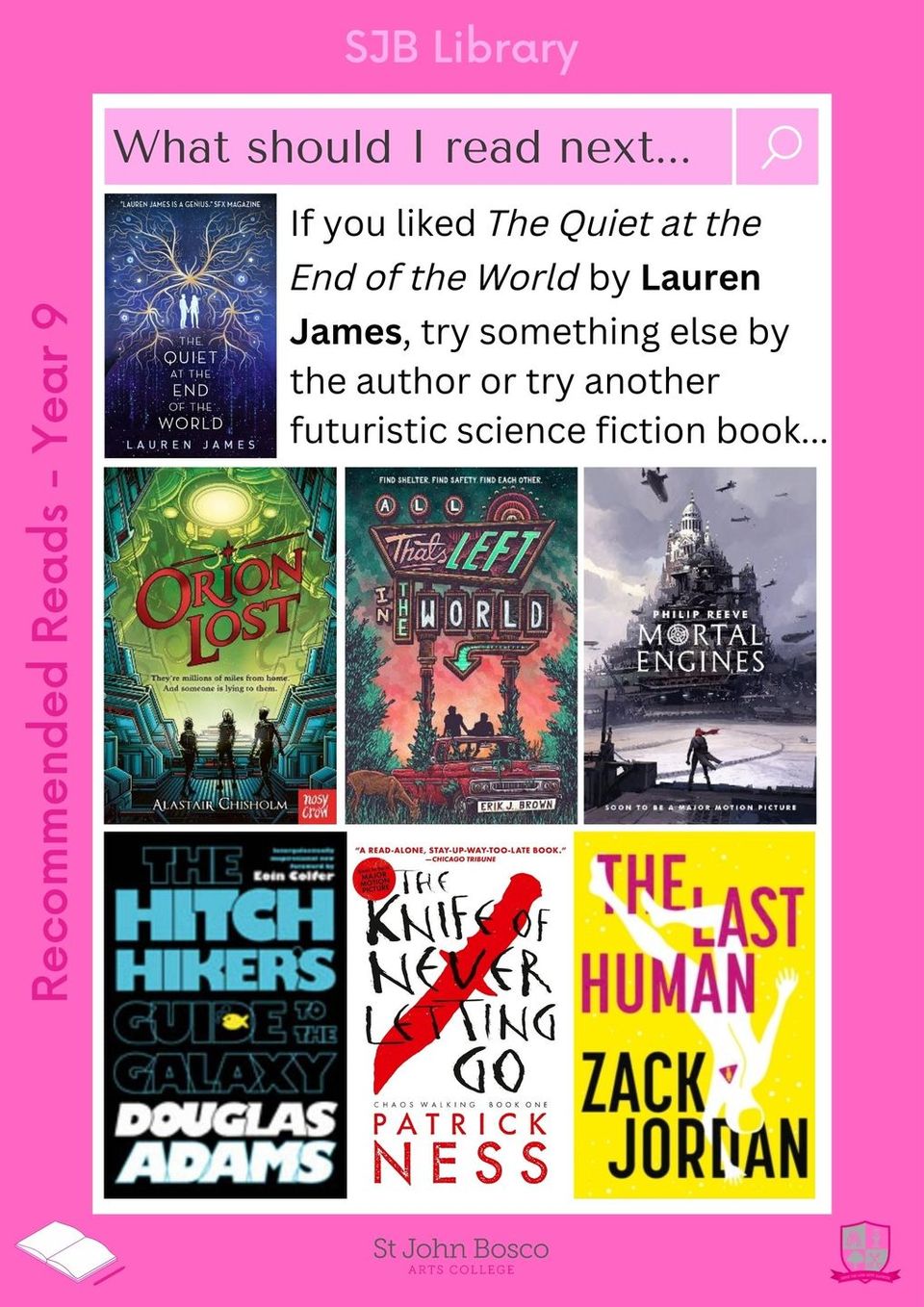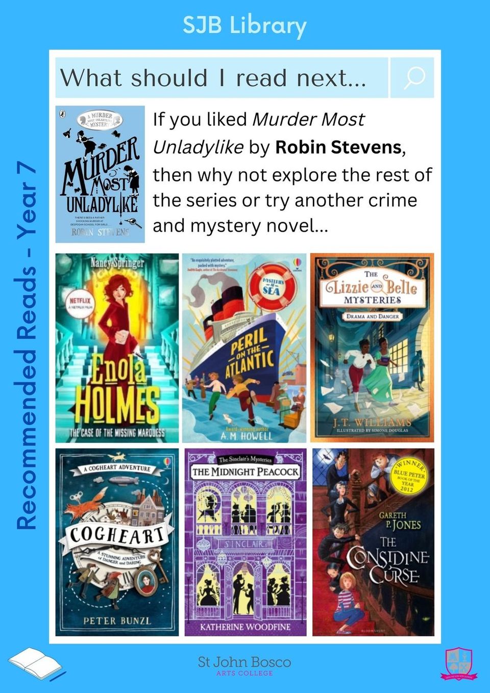 Did you enjoy your form time read and are struggling with what to read next? Then check out the further reading recommendations for each year group below (click on the image to enlarge). There’s something there for everyone and if you click on each book cover you can uncover a sneak peak of each book;