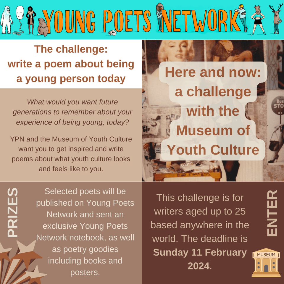 YPN and the Museum of Youth Culture want you to get inspired and write poems about what youth culture looks and feels like to you.